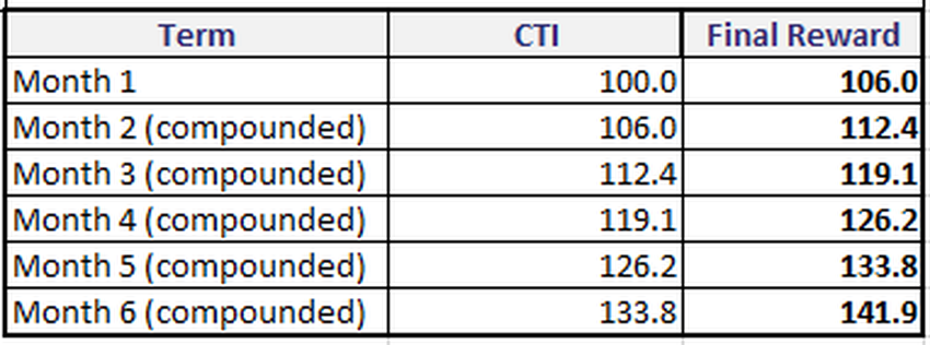 For example, if CTi holders decide to stake 1,000 tokens in a three-month staking contract, they would earn a total of 1,210 CTi. However, if they decide to compound the 1,210 CTi tokens for a 30-day staking period, the total amount of earnings would become 1,283 CTi tokens.