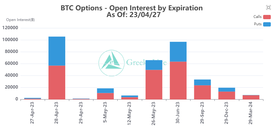 Bitcoin options expiry is approaching again, with 105,000 BTC contracts in the balance on April 28. Additionally, there is a max pain point of $27,000 and a notional value of $3.1 billion.