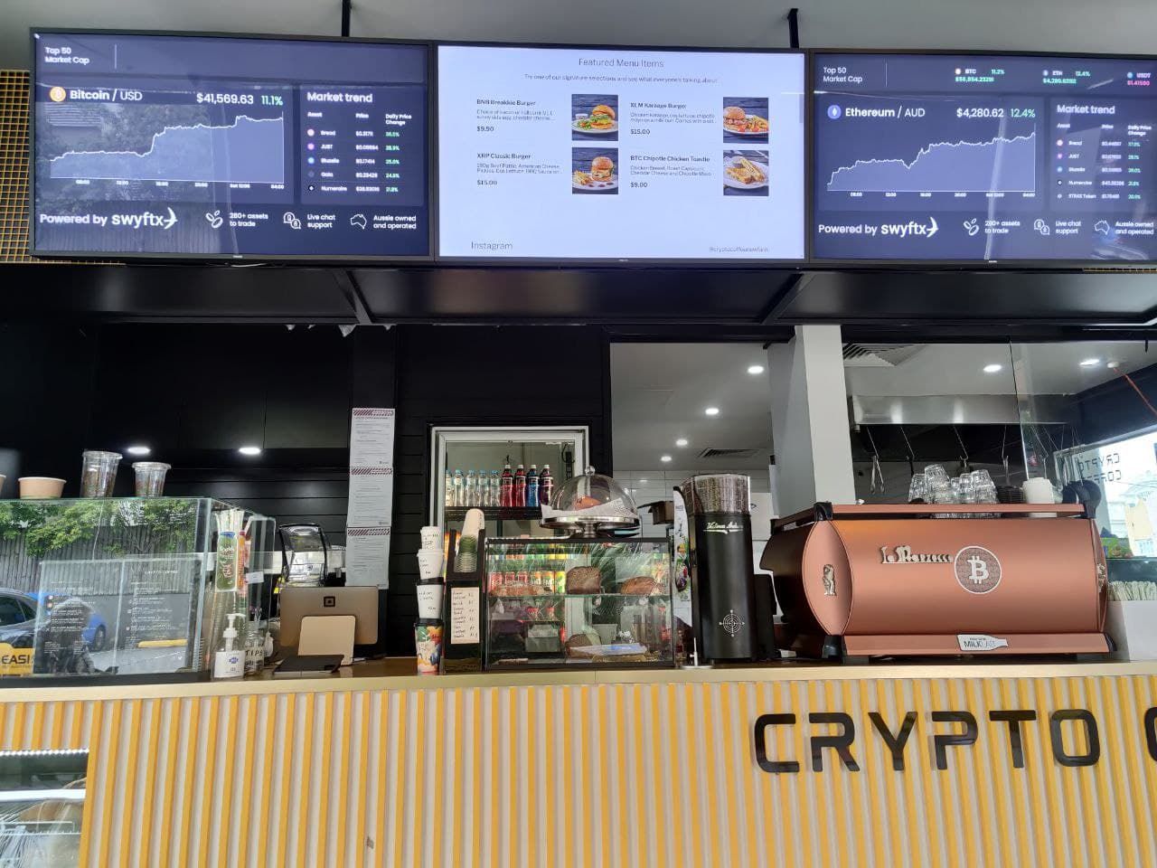 Sponsored SponsoredJustin’s notion was to have a café that had live price charts of cryptos showing in the café, while serving coffee and food and accepting payment for that in crypto. He says it all came together after he built the café and then Brisbane-based cryptocurrency platform Swyftx approached him with a proposal for a partnership.