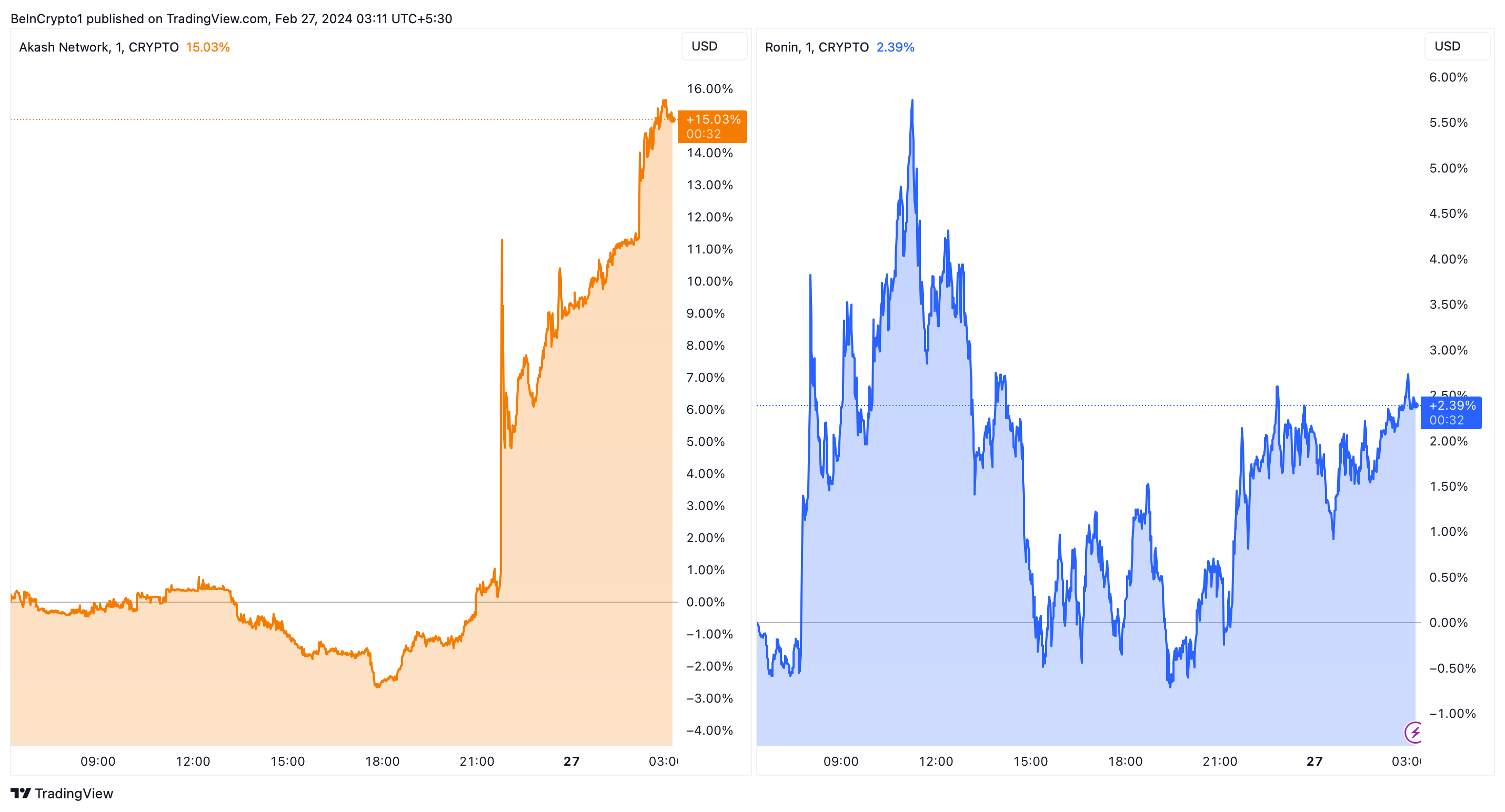 The announcement via Coinbase’s official Twitter account has sparked interest among investors and traders eager to explore these new assets. Indeed, AKT has experienced a 15% price increase in the last 24 hours, while RON has risen by 2.39%.