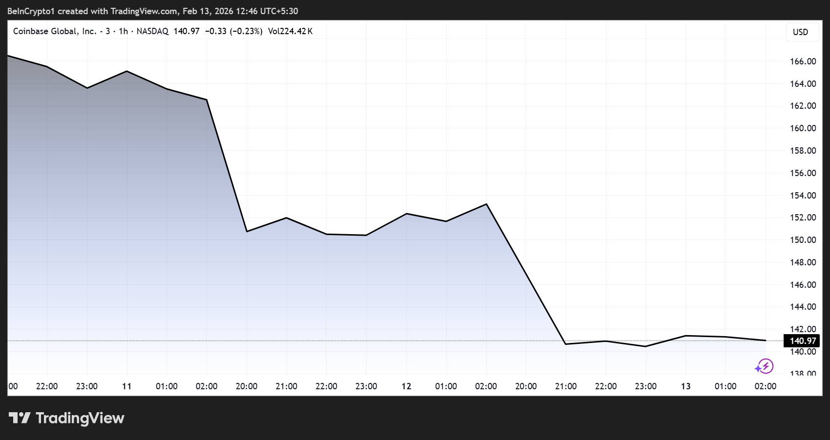 As of this writing, COIN stock was trading for $140.97, down by over 45% year-to-date.