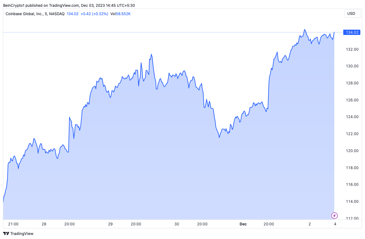 COIN Stock Rallies Past $130