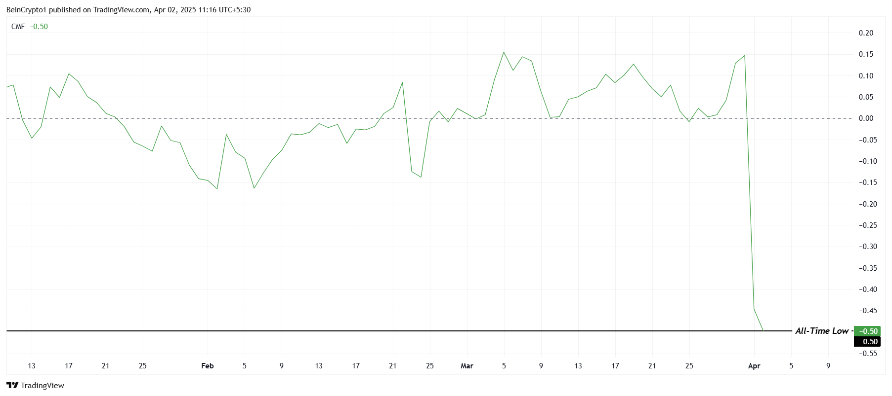The Chaikin Money Flow (CMF) indicator has recently reached an all-time low, signaling significant outflows from Compound. Investors have been quick to act, cashing out their holdings as concerns over the Compound Foundation announcement continue to linger. This suggests that investors are reacting to short-term factors and are also deeply concerned about the broader implications for the token’s future.