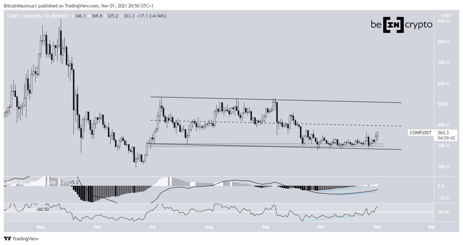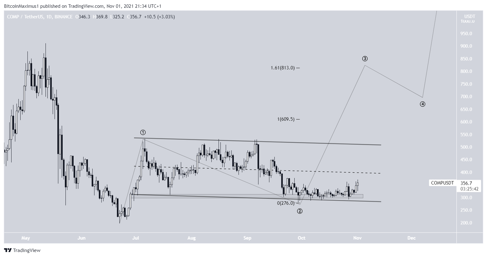 Compound (COMP) has been decreasing inside a corrective pattern since the beginning of July, but could soon break out from it.