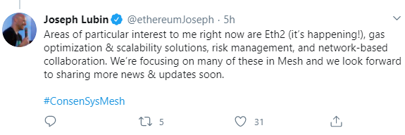 SponsoredConsenSys Founder Joseph Lubin made the announcement on Twitter, explaining that Mesh will continue the company’s pioneering “mission of exploration,” which is to “advance the adoption of decentralized protocols, infrastructure and applications.”
