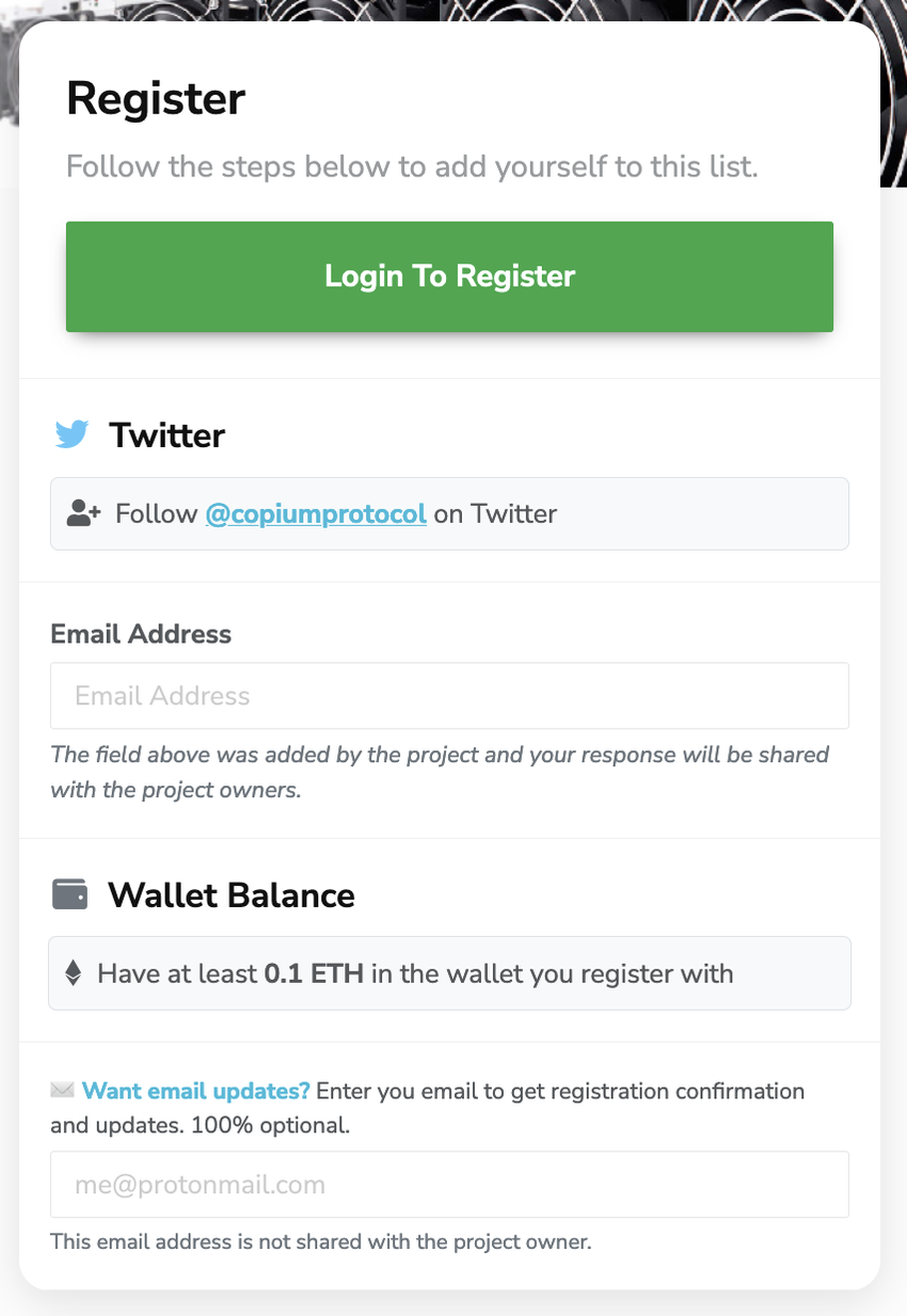 From there, simply fill in the following form by connecting your wallet and entering your email address;
