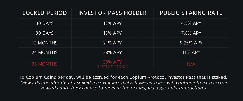 - Exclusive Investor Pass rates when staking Copium Coin holdings.