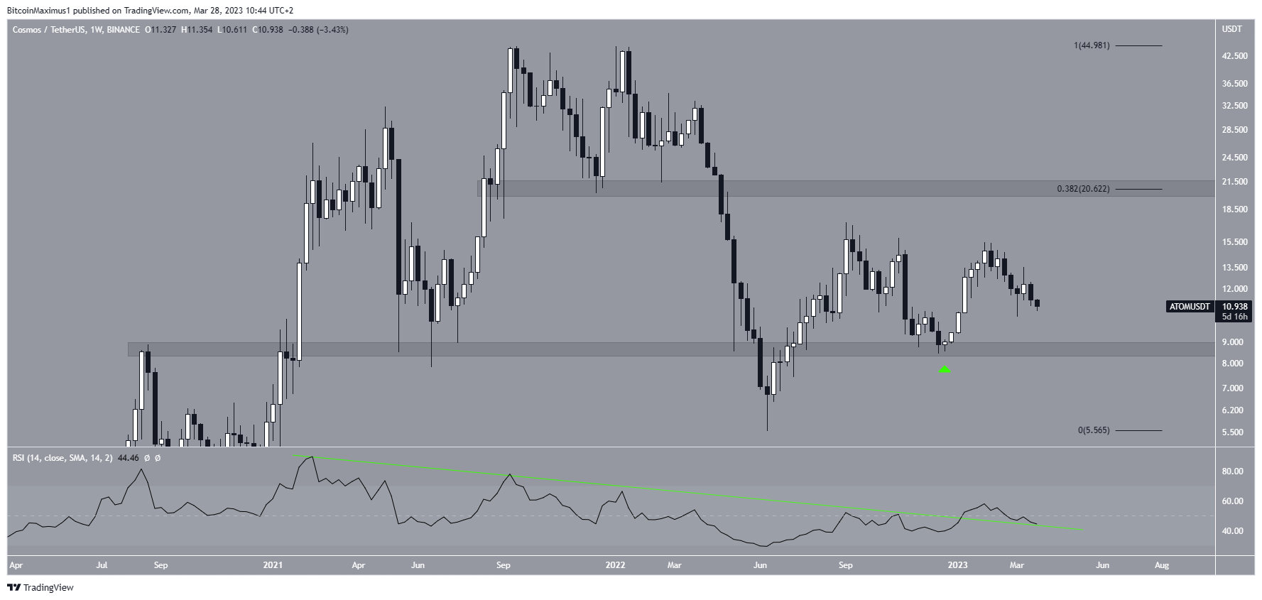 However, if the weekly RSI fails to validate the line as support and the decrease continues, ATOM could drop to $8.80, which would be the lowest price of the year.