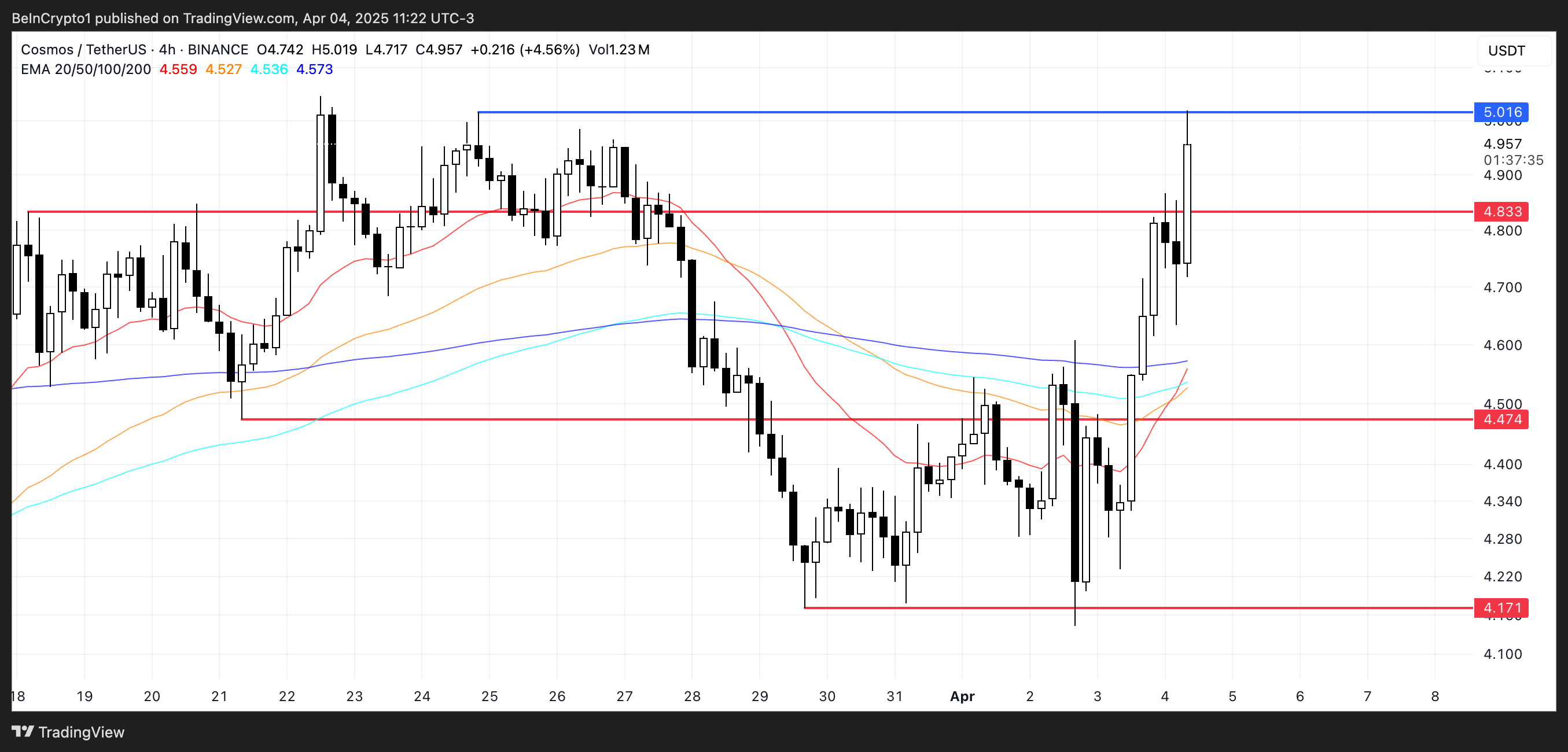 With the recent price surge, Cosmos price is approaching a key resistance level at $5, and a breakout above it could pave the way for further gains toward $5.5 and even $6.