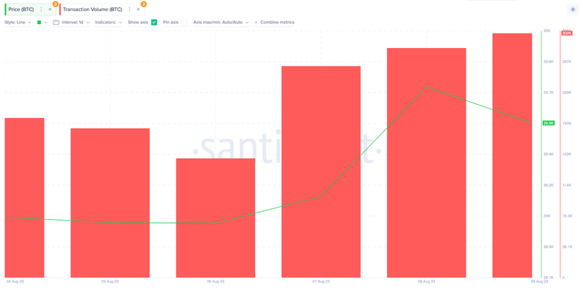 As depicted in the chart below, BTC Transaction Volume for August 6 stood at 147,670 transactions. By the close of August 9, it rapidly increased to 302,500 transactions.