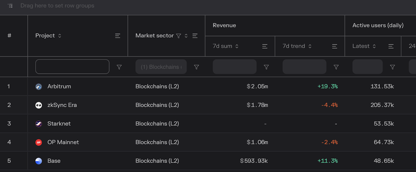 The screenshot below shows that amidst all the layer-2 protocols, Arbitrum had the highest revenue in the past seven days. It collected a revenue of $2.05 million in the mentioned period.
