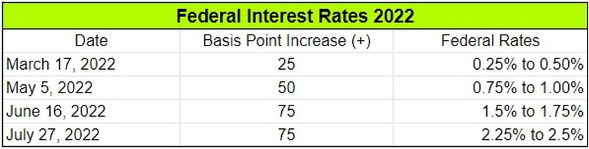 While the Fed has so far avoided a 100 point hike, it has instituted a number of ever-increasing interest rate hikes this year. In March, it announced a 25 point increase, in May that grew to 50 points. June and July both saw rate increases of 75 points.