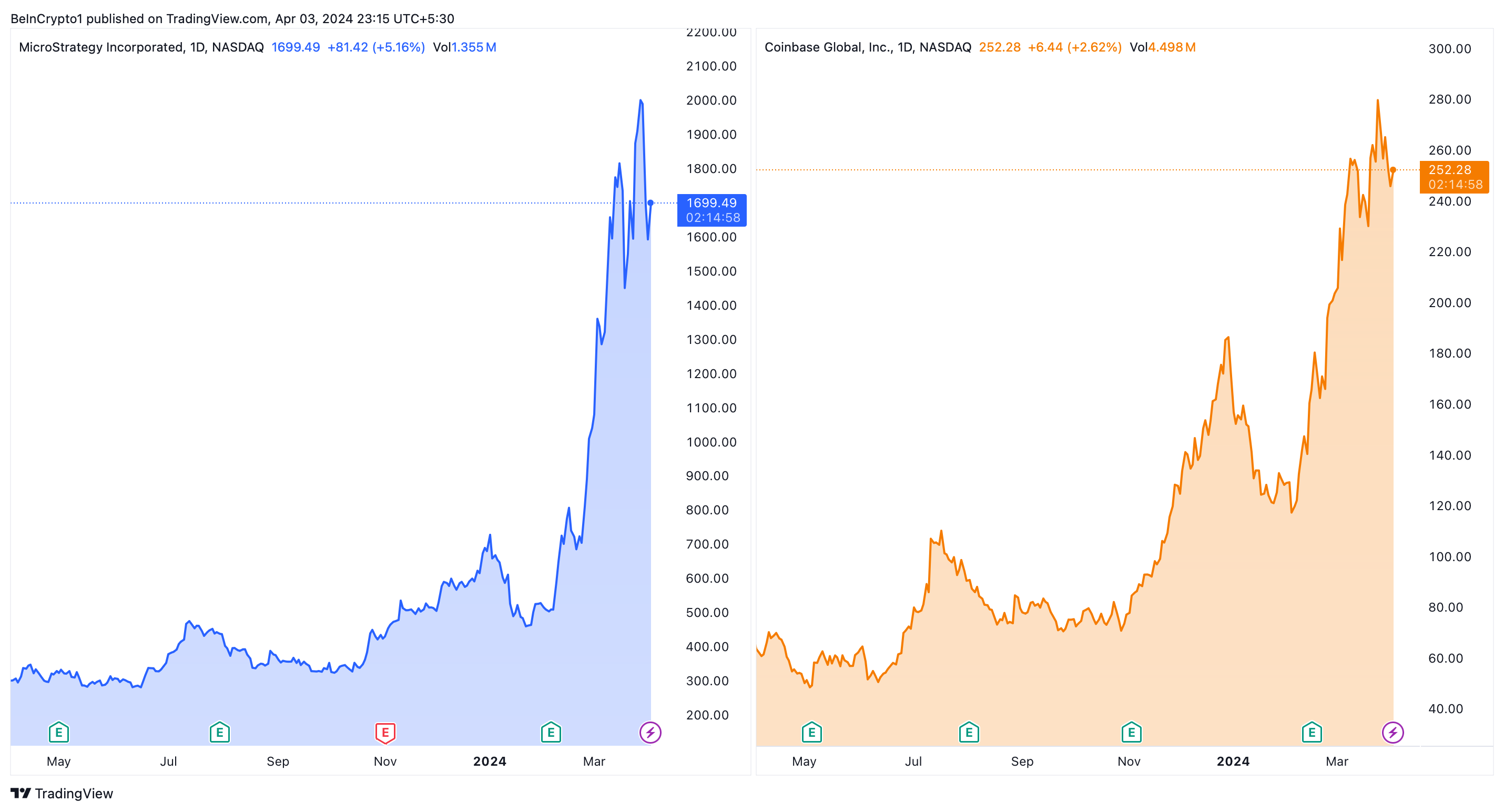 Both firms have experienced a fourfold increase in their share prices over the last twelve months, reflecting the booming interest in digital currencies.