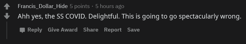 The management company running the ship, Columbia CS, has a COVID-19 response procedure similar to regular cruise ships. Still, one user commented that a full cruise ship might as well be called the “SS COVID.”