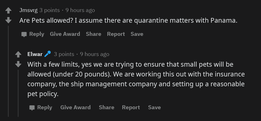 So if the ship is legally in Panama, some users asked, what’s the point? Elwartowski explained that the initial run of the ship would be to prove the viability of sustainable seasteading. With some experience, the company will explore moving out into international waters.