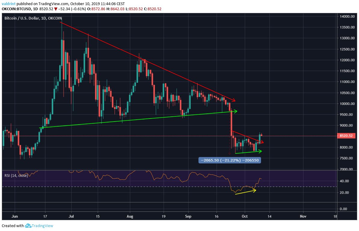 The Bitcoin price traded inside a symmetrical triangle for roughly 160 days in the period between June-October 2018.