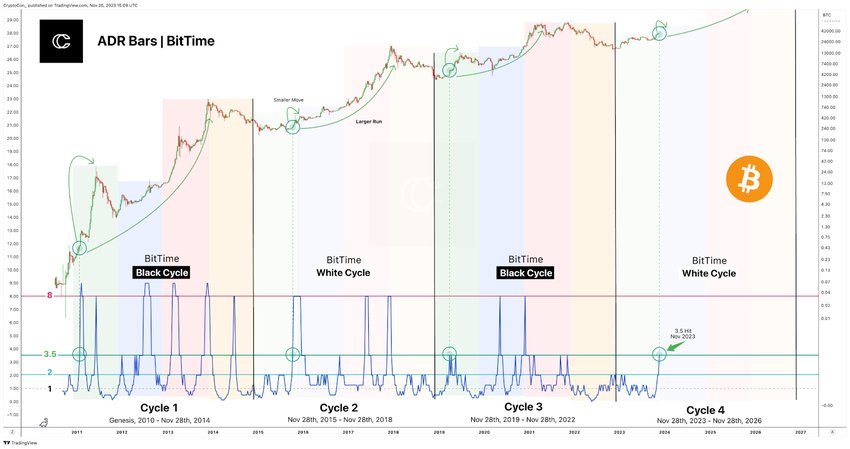 Renowned analyst CryptoCon, who maintains a large X (Twitter) following of 65k, shared his analysis on Bitcoin reaching an important technical milestone. As CryptoCon told his followers, “For the first time this cycle, #Bitcoin has hit the 3.5 ADR level.”