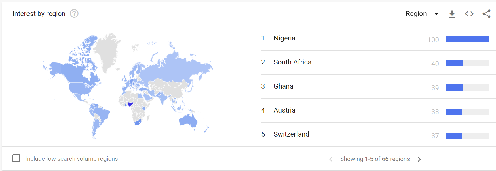 Interest in Bitcoin and cryptocurrency appears to be thriving in Africa thanks to developments like those detailed above. Google Trends data shows that the three top regions searching for the term “Bitcoin” are Nigeria, South Africa, and Ghana.