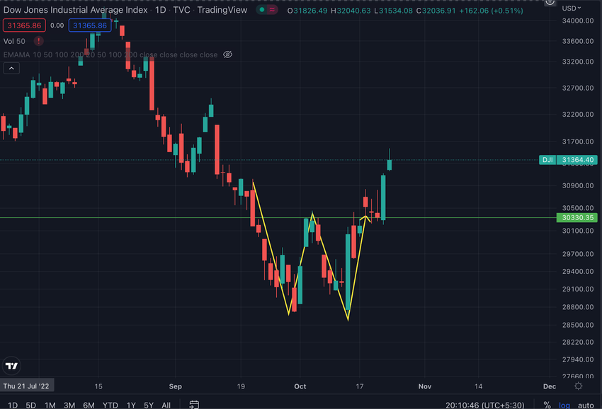 The technicals differ from the point of view of Wall Street Veterans. The Dow Jones Industrial Average Index shows a double-bottom breakout.