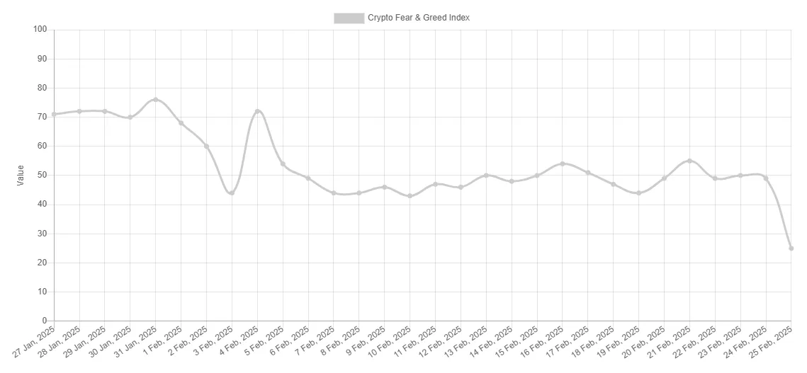 If we look at the fear and greed index from the past three months, this volatility in market sentiment is evident. Also, the market sentiment is currently at its lowest in 2025.