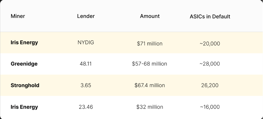 Sponsored“Our tally (of known defaults from public miners) puts the total default amount at $227.40 million on the low end and $238.40 million on the high end.”