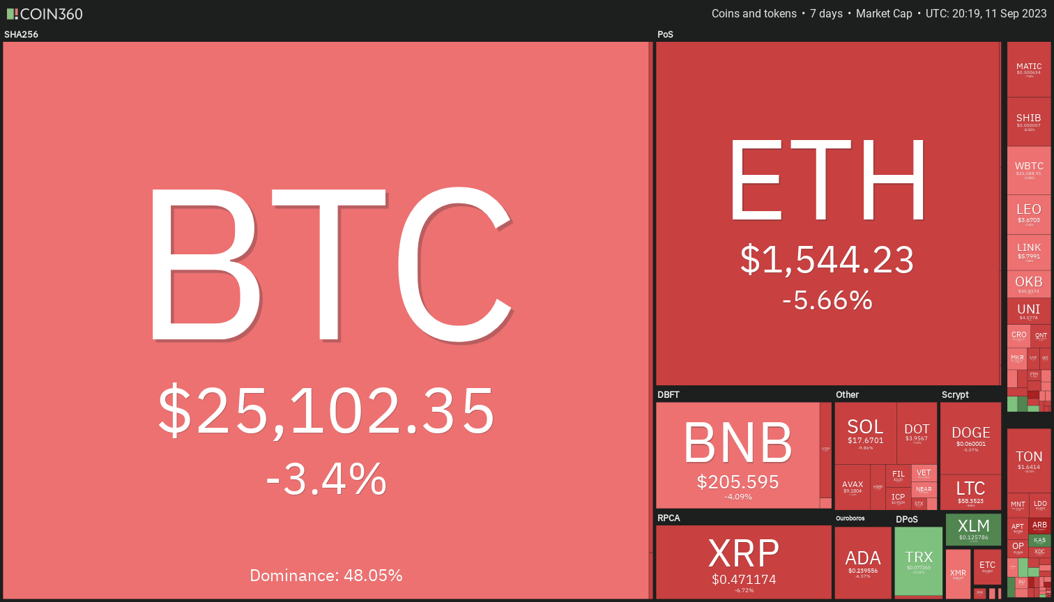 Investor sentiment appears cautious, evidenced by the predominant selling pressure. 18 out of the top 20 cryptocurrencies by market capitalization have reported losses in the past week.