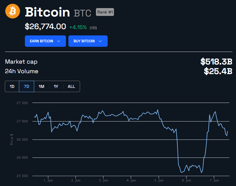 At the time of writing, CoinGecko’s aggregate market cap for cryptocurrencies had increased by approximately 3% during the previous 24 hours. The market is still above the $1 trillion threshold, while Bitcoin has also increased by 4% on the daily charts.