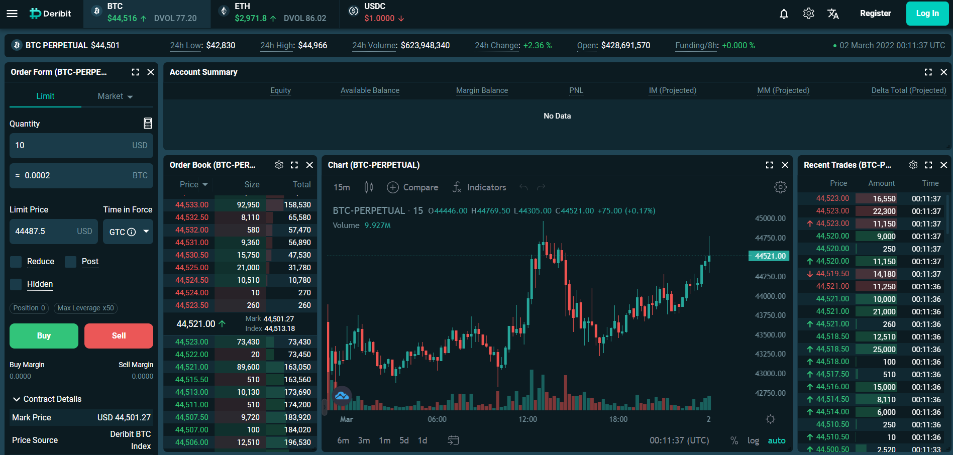 Deribit is widely considered to be one of the most popular crypto derivatives platforms in the world. It was one of the first exchanges in Europe to offer Bitcoin futures and options when it launched in 2016. Deribit’s position as a market leader has only continued to grow in recent years. This is a result of the platform offering its clients a range of financial tools including futures, perpetual swaps, and options related to Bitcoin and Ethereum.