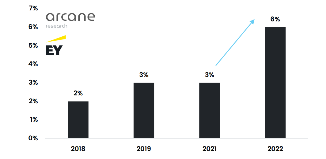 Arcane Research and Ernst & Young polled 1,000 Norwegians online and found the rate of crypto ownership had lept from 3% early last year to 6% by yesterday.