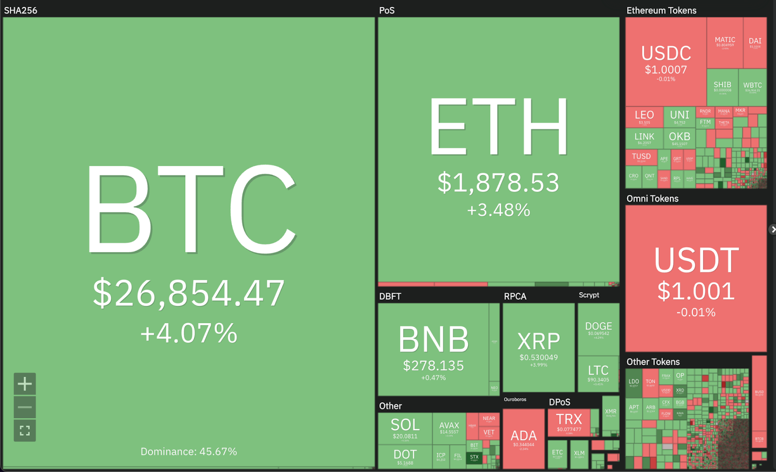 Nevertheless, the sharp price drop that followed the announcement of these lawsuits has largely been erased, with Bitcoin returning to the $26,900 level.