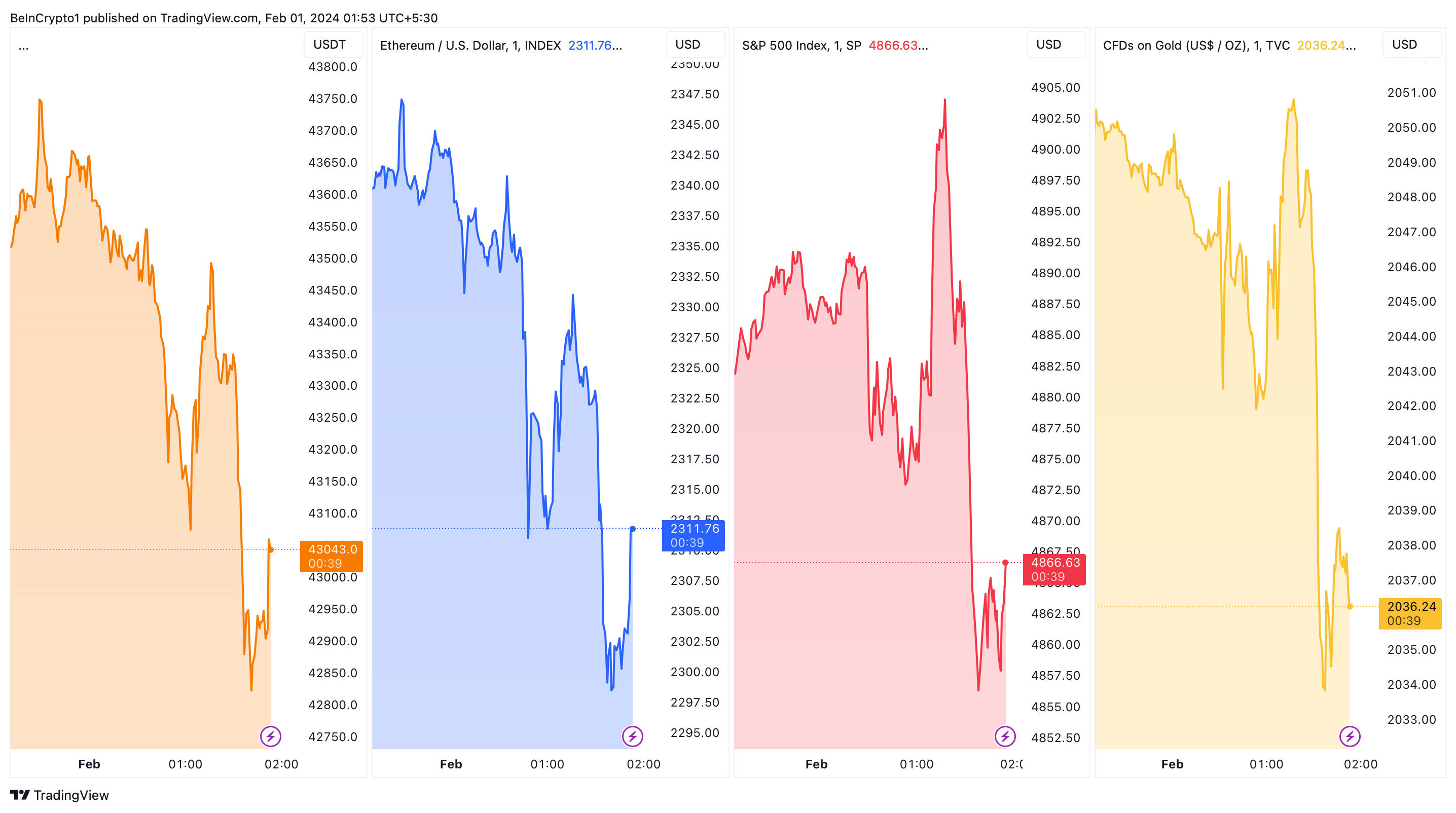 Following Powell’s remarks, significant assets witnessed a downturn. Bitcoin, the leading cryptocurrency, fell by 2.30%, moving from $43,744.10 to $42,701.90. Similarly, Ethereum also saw a decline of 2.25%, dropping from $2,346.85 to $2,294.00. These movements highlight the sensitivity of cryptocurrencies to global financial policies and investor sentiment.
