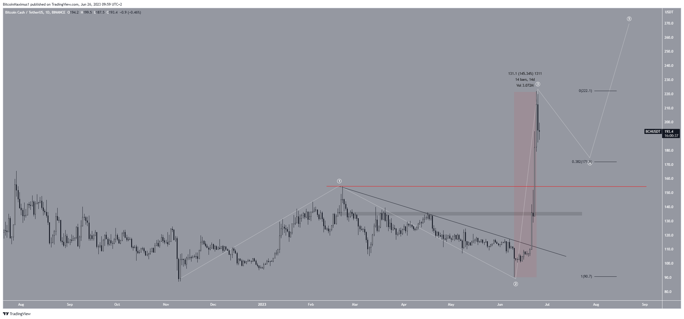 The BCH price has been on an absolute tear since June 10. The price reached a new yearly high of $222 on June 24. This was the culmination of a two-week rally in which the price increased by 145%.