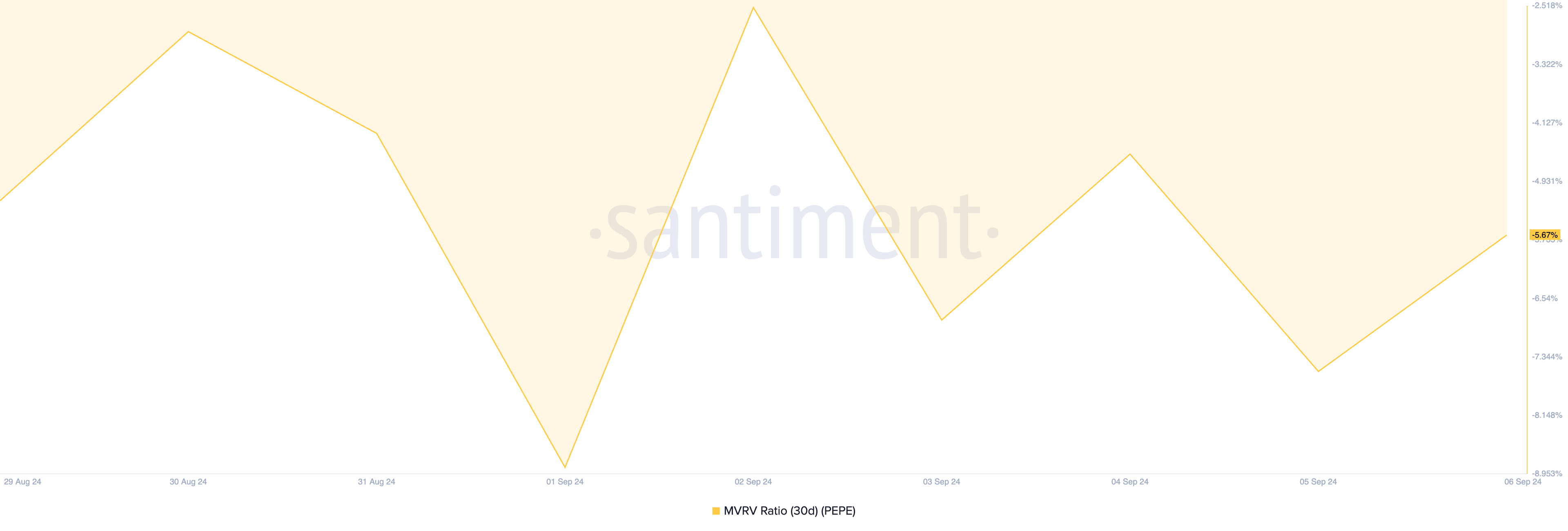 These addresses have been encouraged to accumulate the meme coin following a buy signal from its Market Value to Realized Value (MVRV) ratio. This on-chain metric, calculated using a 30-day moving average, stands at -5.67% at the time of writing.