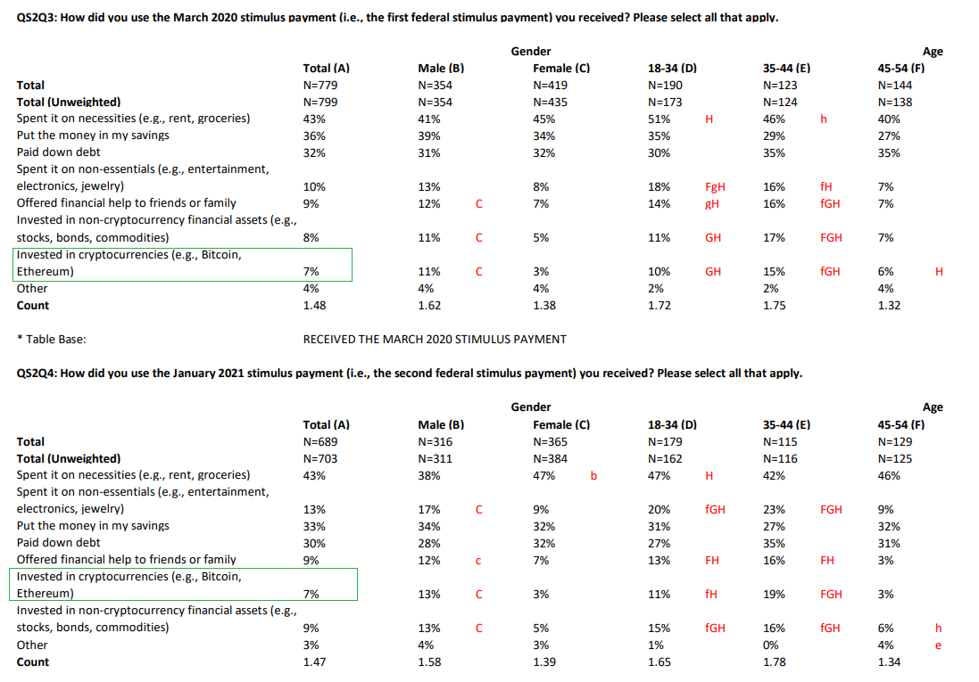 According to data from a Harris Insights poll, roughly 7% of Americans surveyed have used their stimulus checks to buy cryptocurrencies like Bitcoin and Ethereum.