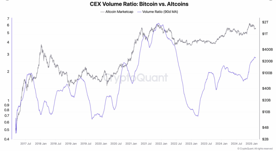 In a recent post on X (formerly Twitter), Ju declared that alt season has begun, citing a sharp increase in altcoin trading volumes. According to the analyst, the altcoin trading volume is now 2.7 times that of Bitcoin. However, Ju also noted that this is not a broad-based rally.