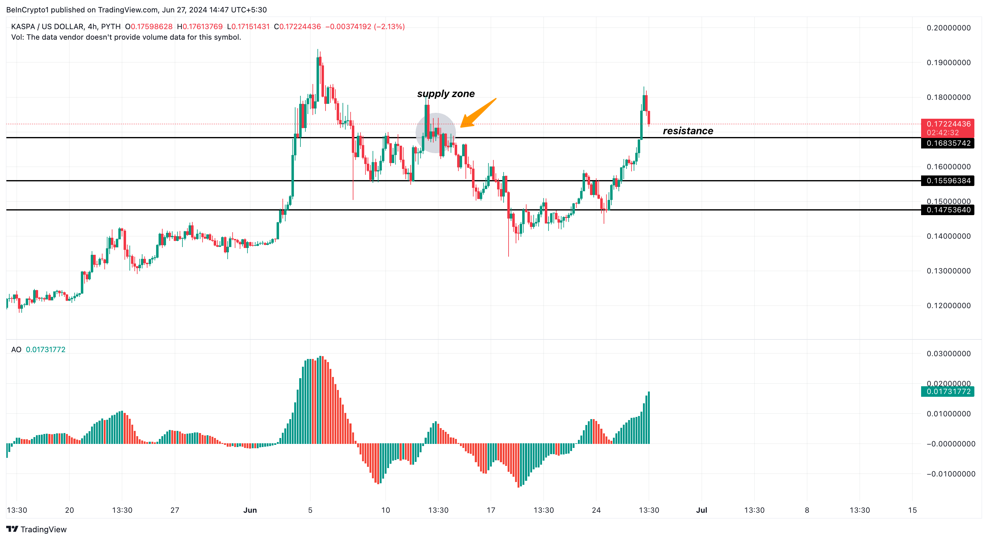 Sponsored SponsoredOn the 4-hour chart, bulls can be seen defending the $0.14 and $0.15 support. They also broke through the $0.16 resistance, a major supply zone with bearish interest on June 13.