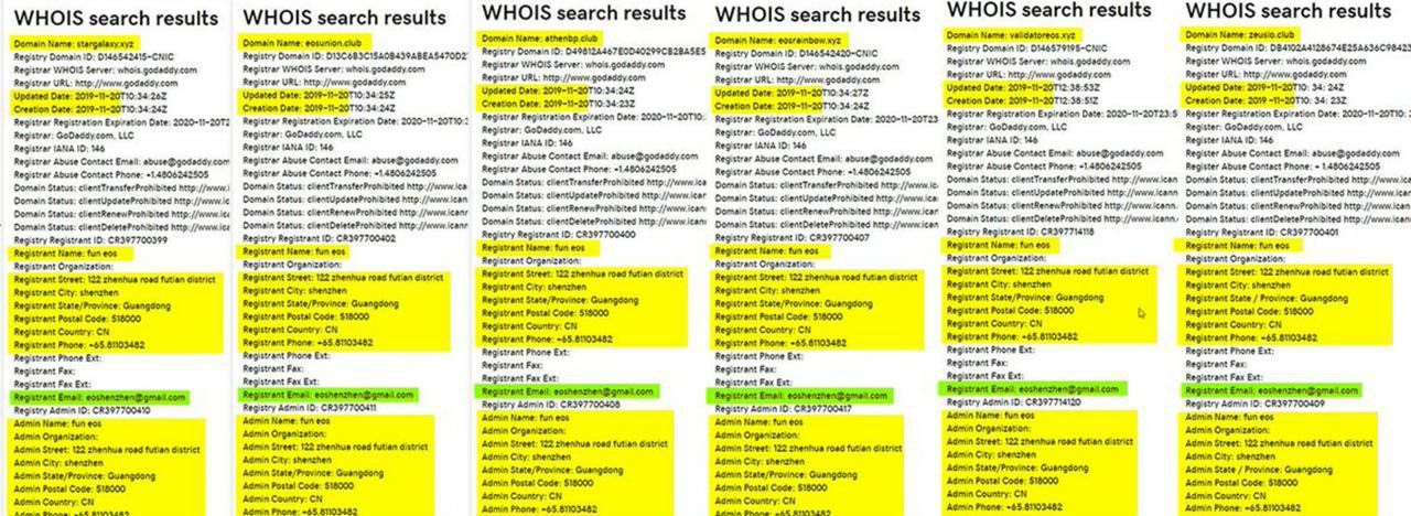 The blockchain came under intense scrutiny when block producer EOS New York published data on social media purportedly showing that a single entity managed six registered producers on the network. Screenshots revealed that six domains were registered by a single company based in Shenzhen, China, operating under the same name.