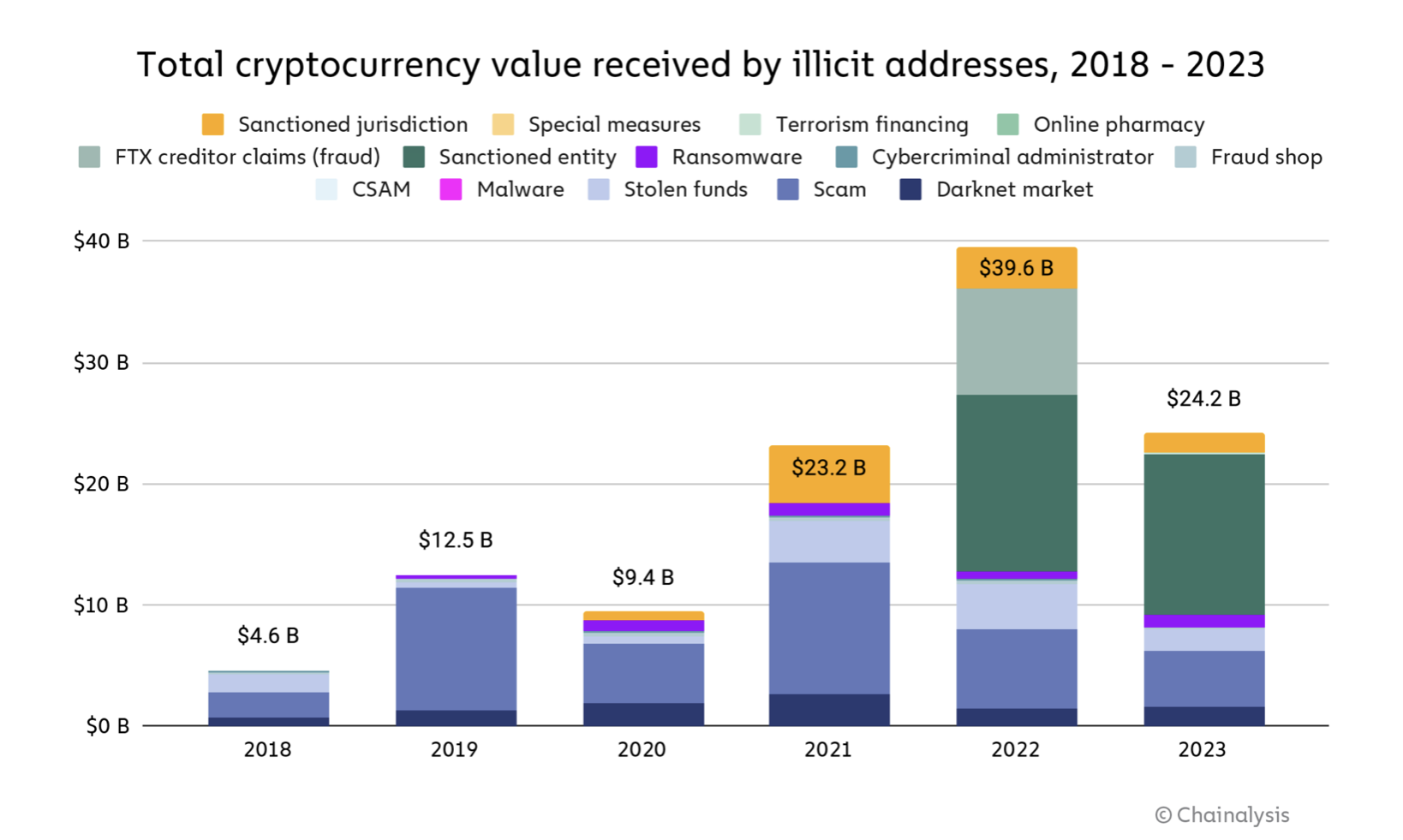 However, ransomware, is often seen on Chainalysis’ yearly graphs, typically restricts computer system access until a crypto payment is made.