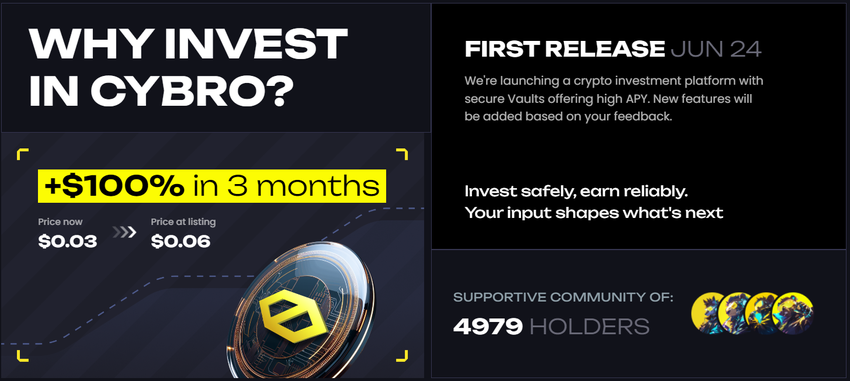 In conclusion, CYBRO’s blend of advanced AI, robust security measures, and user-friendly design makes it a promising contender in the DeFi landscape, poised to attract a diverse range of investors looking for reliable and profitable investment opportunities.