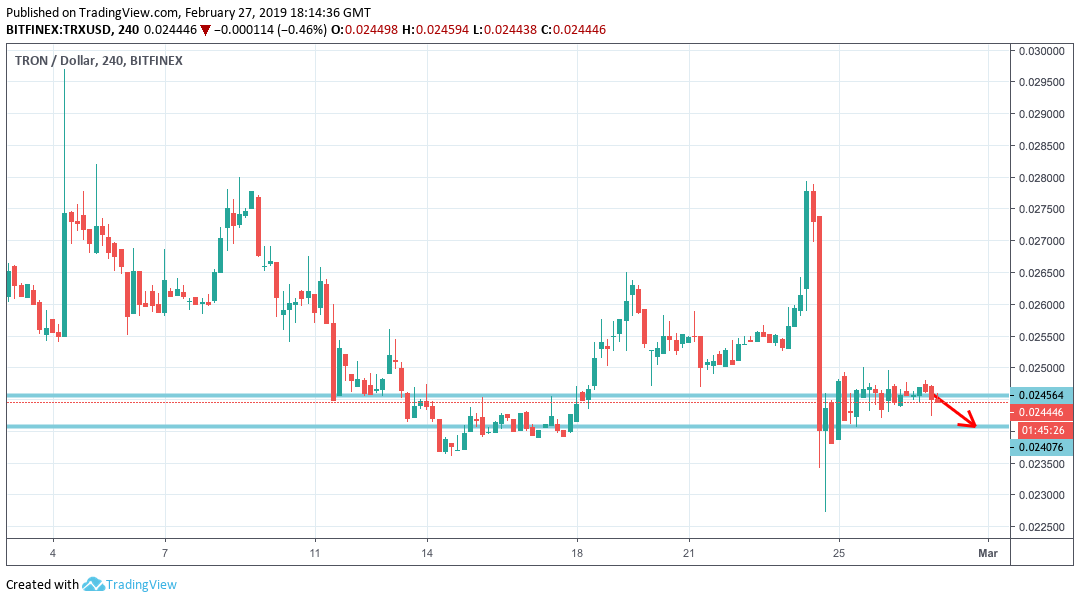 Like both EOS and Stellar, TRON experienced an impressive spike between Feb 4 and 6, adding an additional 17 percent to its value to achieve $0.027 per coin.