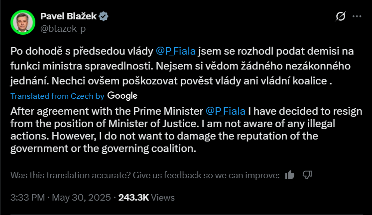 Blažek has already resigned over this dark web Bitcoin scandal, but the Czech government may not avoid the scandal.