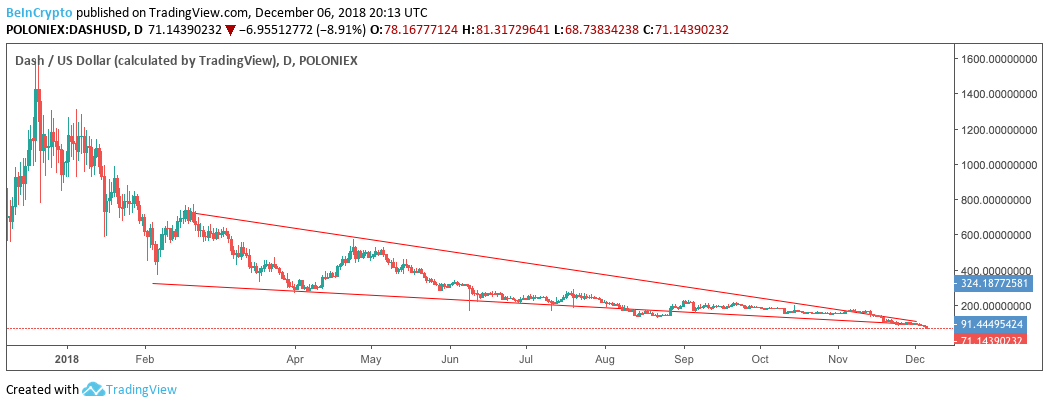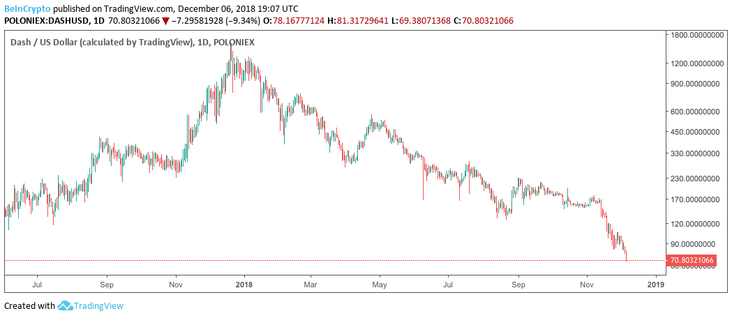 [bctt tweet=”Dash $DASH is expected to continue to fall in 2019, losing an additional 20 percent of its valuation as 2018 draws to a close.” username=”beincrypto”]