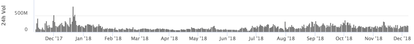 Curiously, throughout the 2018 bear market, Dash has managed to retain an impressively high trade volume, maintaining above $150 million per day throughout the second half of 2018, showing that usage remains high.