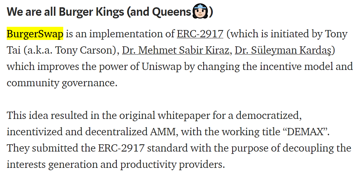 Unlike SushiSwap, which is a fork of Uniswap, BurgerSwap’s core code, which they call DEMAX, “is not forked or copied.” They say,