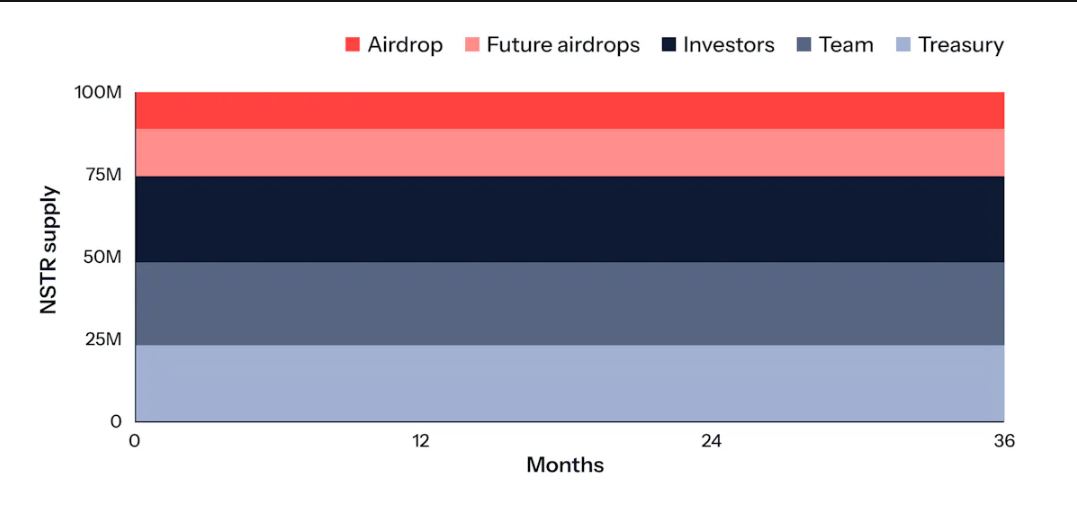 Nostra revealed their tokenomics for NSTR, featuring a total supply of 100 million tokens unlocked entirely at launch. NSTR will serve as the governance token for the Nostra ecosystem.