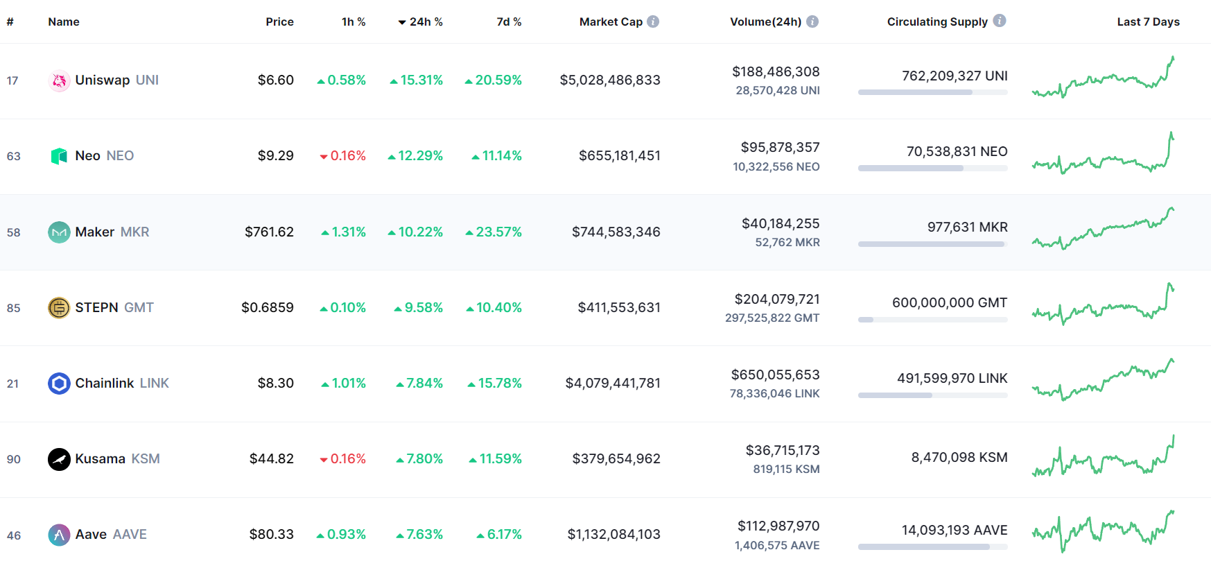 UNI, MKR, and AAVE gaining ground