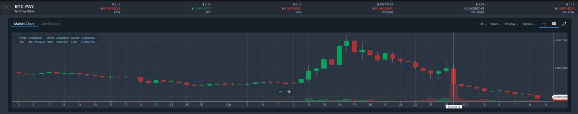 Since Dec 25, 2018, PAY is down 54 percent in terms of BTC value. Since Dec16, the dump is even worse — down over 70 percent.