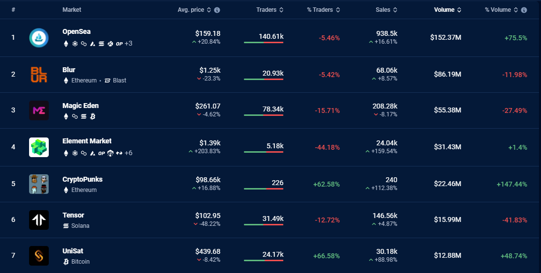 Notably, both OpenSea and Magic Eden are leading the NFT marketplace rankings, consistently ranking among the top three based on trader count metrics.