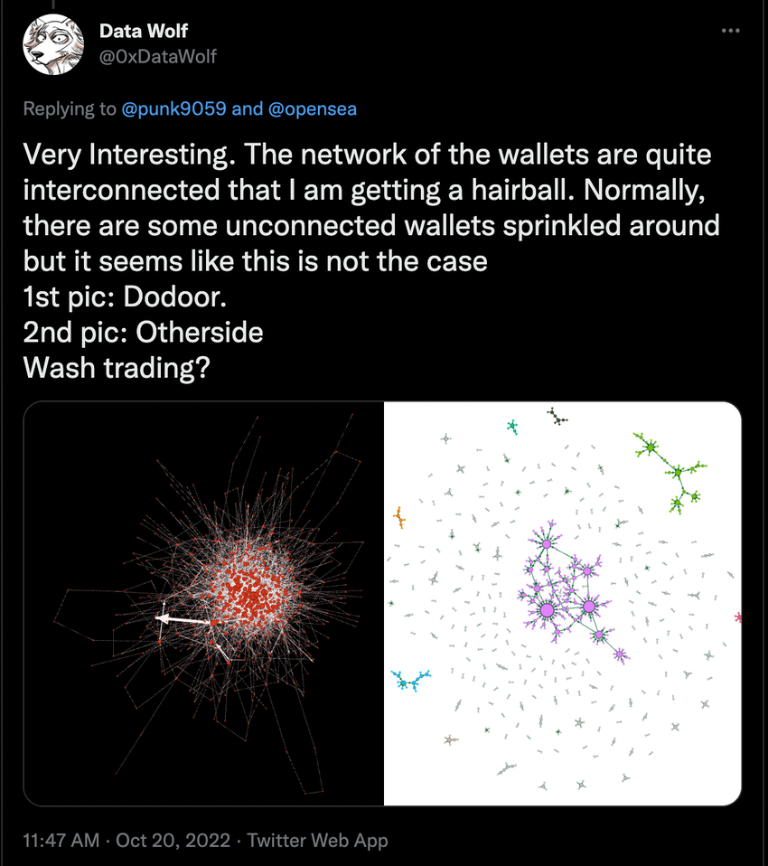 An NFT data analyst shared an infographic on Twitter, showing that the Dodoor NFT owner wallets are quite interconnected.