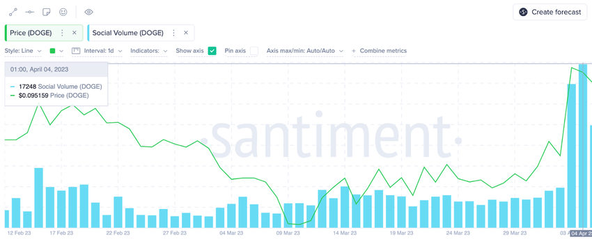 The chart below shows how Dogecoin’s Social Volume spiked from 4,244 to 17,248 between April 2 and April 5.